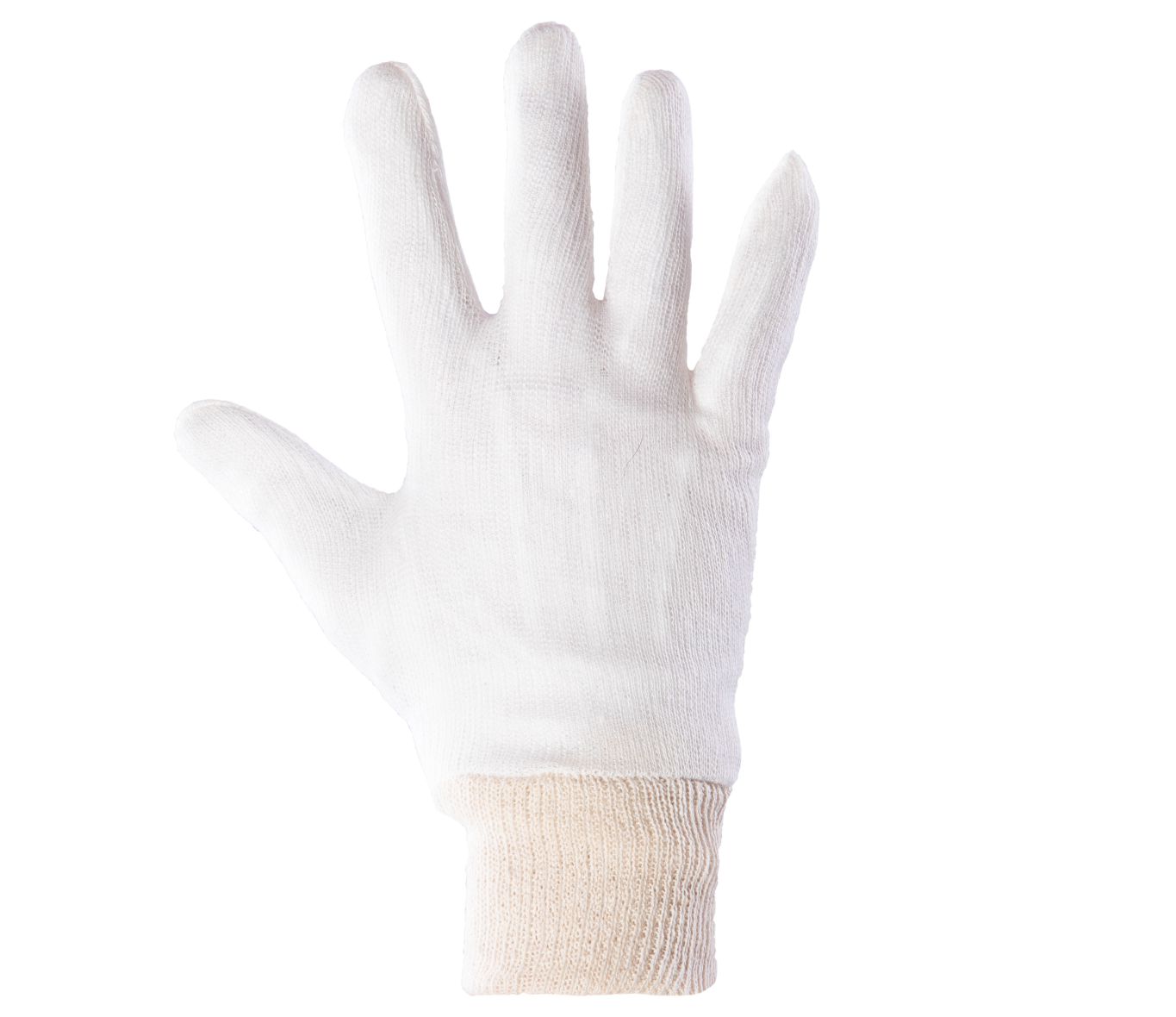 ..Rodzaj rękawicy:: rękawica tekstylna,; ..Materiał/Dzianina:: wykonane z dzianiny bawełnianej w kolorze naturalnym,; ..Mankiet/zakończenie:: zakończona ściągaczem,;
