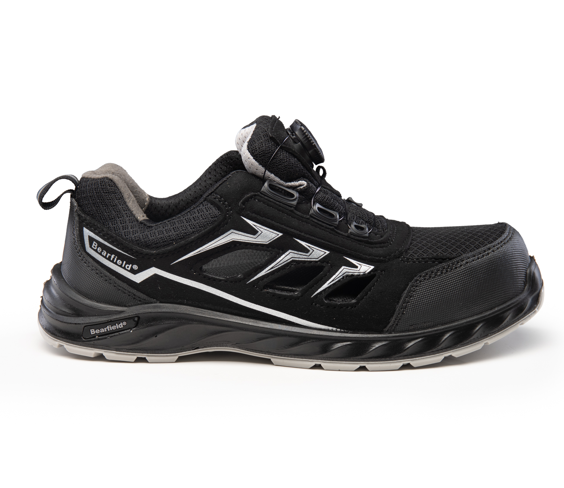.Typ obuwia:: sandał,; .Rodzaj zapięcia:: zapięcie typu BOA(FITGO); .Kategoria ochrony:: S1PS; .Podnosek:: kompozytowy, wytrzymały na uderzenia z energią 200 J oraz zgniecenia do 15 kN,; .Wkładka antyprzebiciowa:: kevlarowa, zabezpieczająca stopę przed przekłuciem o nacisku 1100N,; PS – średnica gwoździa testowego równa 3 mm,; .Wierzchnia część buta:: mikrofibra; superwytrzymała tkanina poliestrowa,; .Wierzchnia część obuwia w kolorze:: czarny,; .Język:: miękki i gruby,; .Wyściółka:: higroskopijna,; .Wkładka:: wymienna,; antygrzybiczna,; antybakteryjna,; .Podeszwa:: wtryskiwana,; PU/PU,; .Właściwości podeszwy:: antyelektrostatyczna,; absorpcja energii pięty,; posiada właściwości antypoślizgowe SR; odporność na olej napędowy – FO; .Dodatki:: elementy odblaskowe,; wstawki materiałowe zwiększające wentylację,; dodatowy warstwa materiału na podnosku,;
