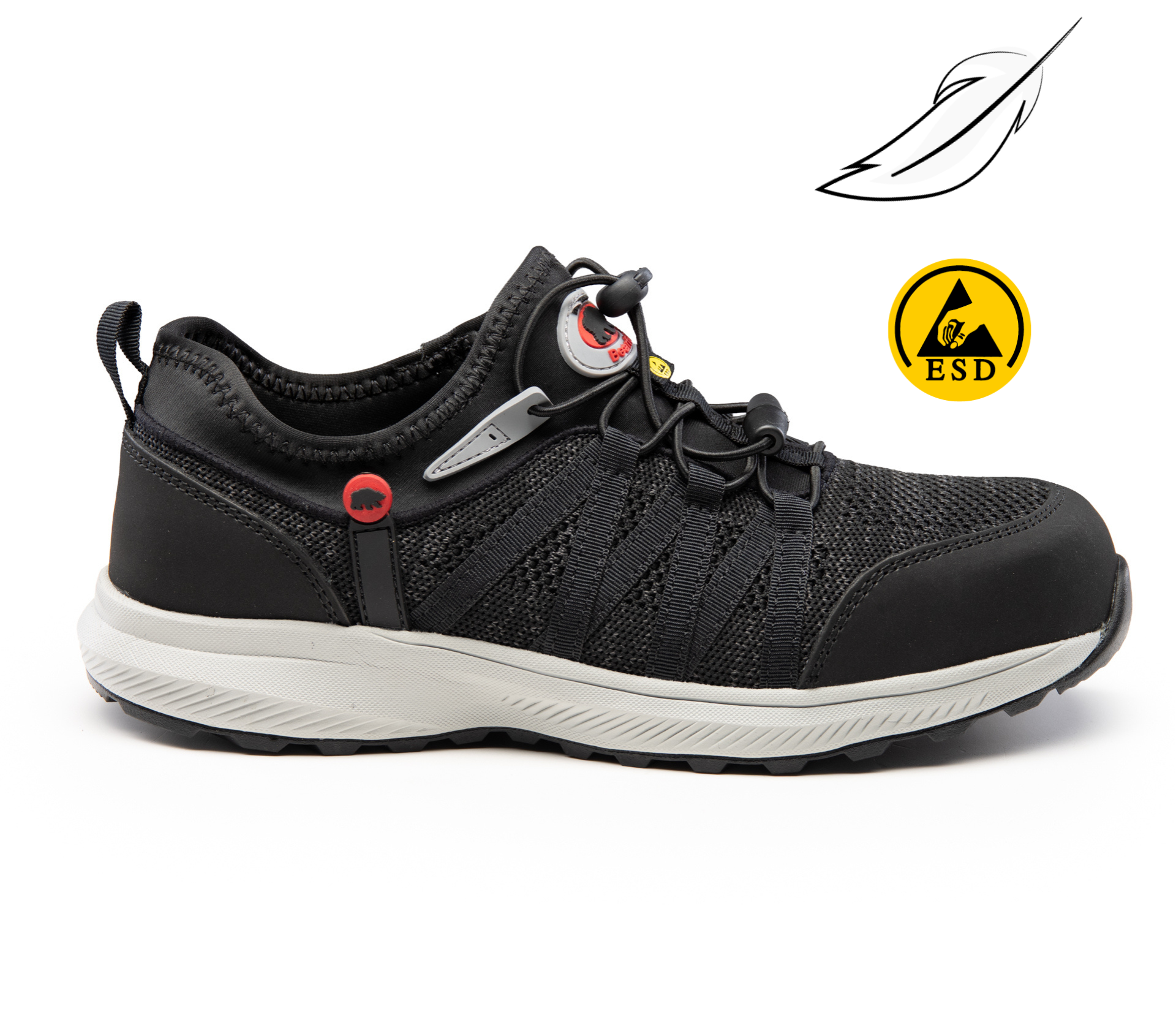 .Typ obuwia:: wsuwany,; półbut,; .Rodzaj zapięcia:: regulacja za pomocą gumki,; .Kategoria ochrony:: S1PS; Metal-Free; .Podnosek:: kompozytowy, wytrzymały na uderzenia z energią 200 J oraz zgniecenia do 15 kN,; .Wkładka antyprzebiciowa:: kevlarowa, zabezpieczająca stopę przed przekłuciem o nacisku 1100N,; PS – średnica gwoździa testowego równa 3 mm,; .Wierzchnia część buta:: superwytrzymała tkanina poliestrowa,; .Wierzchnia część obuwia w kolorze:: czarny,; .Kolor nici:: czarny,; .Wyściółka:: wchłaniająca pot,; zapobiegająca otarciom,; z przewiewnej tkaniny,; higroskopijna,; .Wkładka:: wymienna,; antygrzybiczna,; antybakteryjna,; .Podeszwa:: EVA/GUMA, właściwości rozpraszające ESD EN ISO 61340-5-1-1:2016; .Właściwości podeszwy:: odporna na węglowodory,; olejoodporna,; antyelektrostatyczna,; absorpcja energii pięty,; posiada właściwości antypoślizgowe SR,; odporność na olej napędowy – FO; .Dodatki:: METAL FREE,; dodatowy warstwa materiału na podnosku,; .Obuwie antystatyczne ESD:: TAK,;