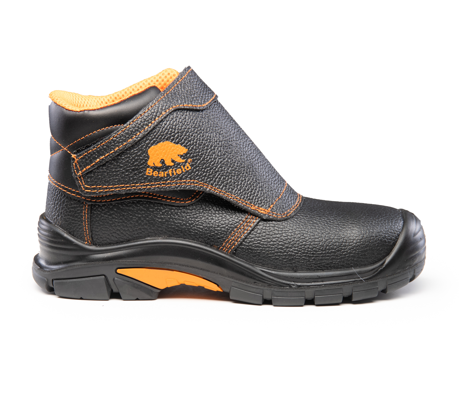 .Typ obuwia:: trzewik za kostkę,; .Rodzaj zapięcia:: zapinany na rzep,; ochronna klapka, zabezpieczająca przed iskrami, zapinana mocnym rzepem,; .Kategoria ochrony:: S3,; Metal-Free; .Podnosek:: kompozytowy, wytrzymały na uderzenia z energią 200 J oraz zgniecenia do 15 kN,; szeroki,; .Wkładka antyprzebiciowa:: kevlarowa, zabezpieczająca stopę przed przekłuciem o nacisku 1100N,; .Wierzchnia część buta:: skóra dwoinowa o grubości 1,6-1,8 mm,; o podwyższonej wodoodporności,; zapewnia odporność na absorpcję wody przez czas 60 min,; .Wierzchnia część obuwia w kolorze:: czarny,; .Kolor nici:: pomarańczowy,; .Język:: miechowy,; miękki i gruby,; .Wyściółka:: w pomarańczowym kolorze,; higroskopijna,; zapobiegająca otarciom,; z przewiewnej tkaniny,; wchłaniająca pot,; .Wkładka:: wymienna,; .Podeszwa:: wtryskiwana,; z kolorową wstawką TPU,; PU/GUMA; z wyżej nalanym podnoskiem,; .Właściwości podeszwy:: olejoodporna,; posiada właściwości antypoślizgowe SRC,; HRO – odporna na kontakt z gorącym podłożem do 300°C przez 60s;