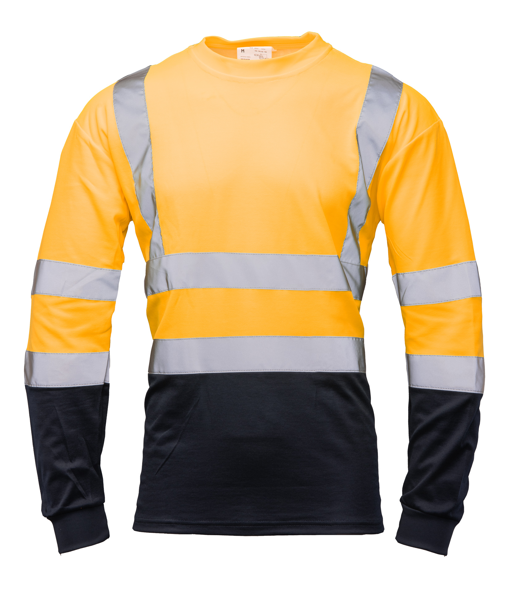 .Materiał:: 50% poliester, 50% bawełna; elastyczna tkanina o intensywnej widoczności,; .Budowa/szycie:: elastyczny ściągacz,; wytrzymałe szwy, szyte mocną nicią,; wstawki kolorystyczne,; .Rękawy/mankiety:: długi rękaw,; mankiety przy rękawach zakończone ściągaczem,; .Elementy odblaskowe:: podwójne pasy odblaskowe zapewniające zwiększoną widoczność,;