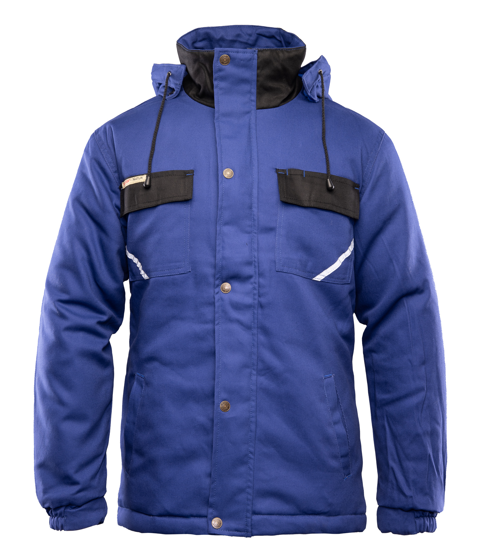 ..Rodzaj zapięcia:: zapinana na zamek kostkowy, kryty listwą zapinaną na napy,; .Materiał:: 100% bawełna, gramatura 270 g/m2,; wykonana z wysokiej jakości materiału, który zapewnia stabilność kolorów i rozmiarów po wielokrotnym praniu,; .Ocieplina:: 100% poliester o gramaturze 200 g/m2,; .Podszewka:: 100% poliester 120 g/m2,; .Budowa/szycie:: wstawki kolorystyczne,; duża ilość ryglówek w miejscach szczególnie narażonych na rozprucie,; szyte mocną nicią,; kurtka parka,; .Kieszenie:: dwie kieszenie boczne,; dwie kieszenie na klatce piersiowej kryte listwą, zapinaną na rzep,; wewnętrzna kieszeń na dokumenty,; .Rękawy/mankiety:: mankiety przy rękawach zakończone ściągaczem,; .Regulacja obwodu:: możliwość regulacji tęgości w dolnej części kurtki,; .Kaptur:: odpinany, regulowany, ocieplany kaptur,; .Elementy odblaskowe:: elementy odblaskowe,;