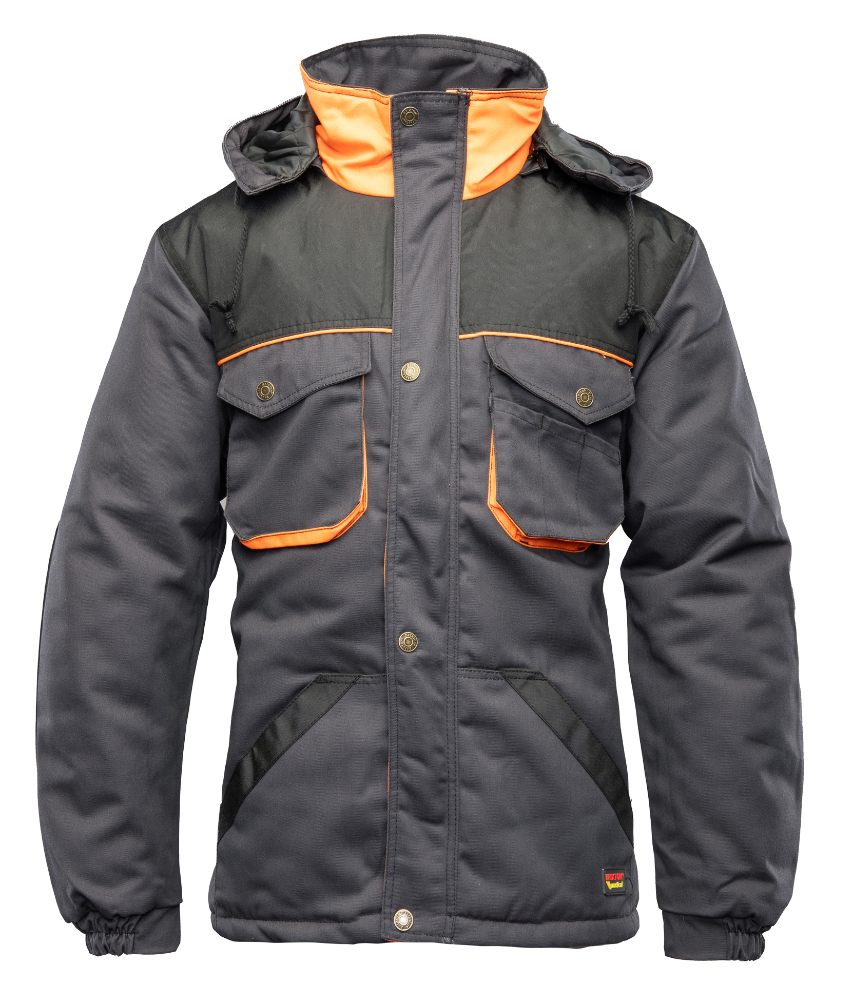 ..Rodzaj zapięcia:: zapinana na zamek, kryty listwą zapinaną na napy,; .Materiał:: 65% poliester/ 35% bawełna, gramatura 290 g/m2,; wykonana z wysokiej jakości materiału, który zapewnia stabilność kolorów i rozmiarów po wielokrotnym praniu,; .Ocieplina:: 100% poliester o gramaturze 200 g/m2,; .Podszewka:: 100% poliester,; .Budowa/szycie:: podwójne szwy, szyte mocną nicią,; duża ilość ryglówek w miejscach szczególnie narażonych na rozprucie,; posiada zaszewki na plecach zwiększające swobodę ruchów,; na ramionach wzmocnienia z materiału OXFORD,; transpiratory powietrza,; dodatkowe wzmocnienia na łokciach z materiału OXFORD,; wstawki kolorystyczne, lamówki kolorystyczne,; .Kieszenie:: kieszeń na komórkę,; kieszeń na długopisy,; dwie kieszenie na klatce piersiowej kryte listwą, zapinaną na napy,; .Rękawy/mankiety:: mankiety przy rękawach zapinane na napy,; .Kaptur:: odpinany, regulowany, ocieplany kaptur,;