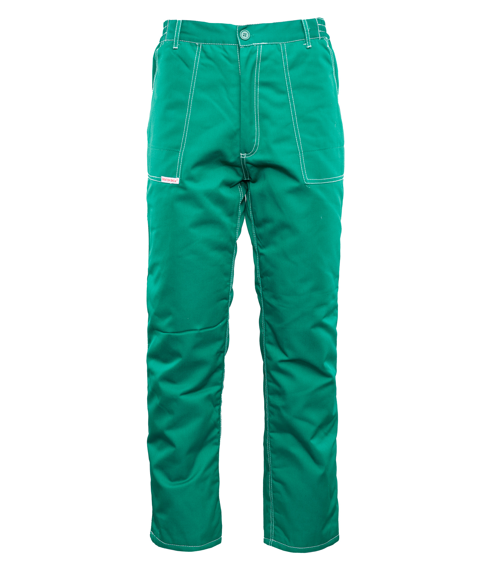 .Materiał:: wykonany z wysokiej jakości materiału, który nawet po wielokrotnym praniu zapewnia stabilność rozmiarów i kolorów,; .Budowa/szycie:: podwójne szwy, szyte widoczną, mocną nicią,; szlufka na młotek,; rozporek zapinany na suwak,; duża ilość ryglówek w miejscach szczególnie narażonych na rozprucie,; .Kieszenie:: kieszeń na miarkę „metrówkę”,; dwie kieszenie boczne,; kieszeń na długopisy,; kieszeń z tyłu spodni,; .Regulacja obwodu:: regulacja w pasie za pomocą taśmy gumowej,;