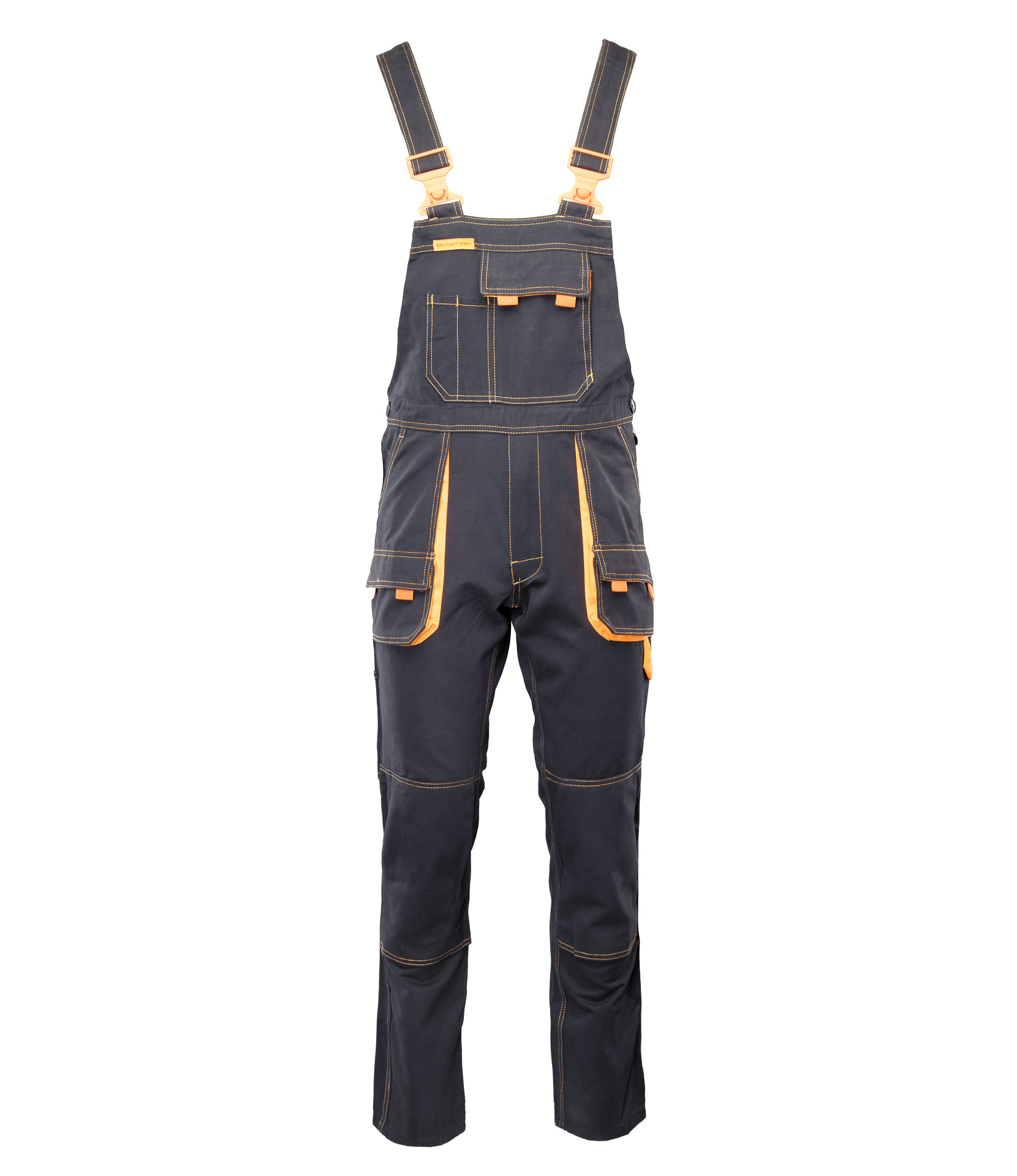 .Szelki:: długie, szerokie, regulowane szelki,; .Materiał:: wykonana z wysokiej jakości materiału, który nawet po wielokrotnym praniu zapewnia stabilność rozmiarów,; .Budowa/szycie:: podwójne szwy, szyte widoczną, mocną nicią,; duża ilość ryglówek w miejscach szczególnie narażonych na rozprucie,; spodnie posiadają szlufki na pasek,; szlufka na młotek,; .Kieszenie:: kieszeń na miarkę „metrówkę”,; wzmocnione kieszenie zapinane na rzepy,; kieszeń na komórkę,; dwie kieszenie boczne,; przestrzenne kieszenie,; kieszeń na dokumenty,; dwie kieszonki na długopisy,; ergonomiczna kieszeń na nakolanniki,; .Regulacja obwodu:: możliwość regulacji w pasie za pomocą guzików oraz gumki wszytej w tylnej części spodni,;