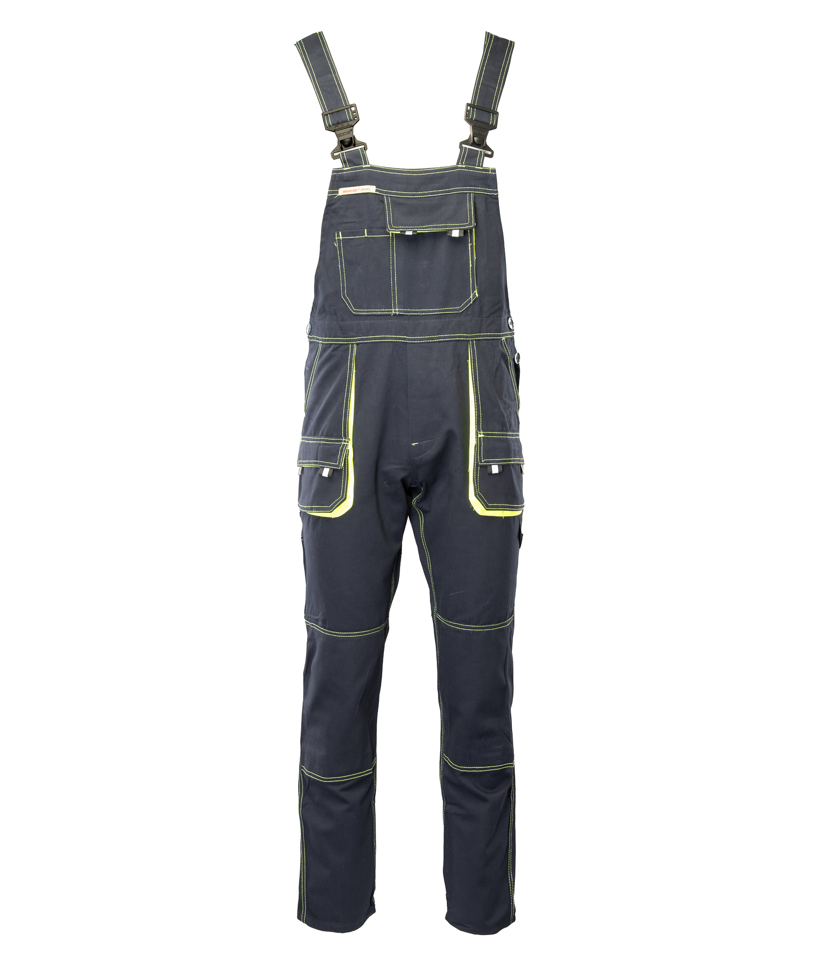 .Szelki:: długie, szerokie, regulowane szelki,; .Materiał:: wykonana z wysokiej jakości materiału, który nawet po wielokrotnym praniu zapewnia stabilność rozmiarów,; .Budowa/szycie:: podwójne szwy, szyte widoczną, mocną nicią,; duża ilość ryglówek w miejscach szczególnie narażonych na rozprucie,; spodnie posiadają szlufki na pasek,; szlufka na młotek,; .Kieszenie:: kieszeń na miarkę „metrówkę”,; wzmocnione kieszenie zapinane na rzepy,; kieszeń na komórkę,; dwie kieszenie boczne,; przestrzenne kieszenie,; kieszeń na dokumenty,; dwie kieszonki na długopisy,; ergonomiczna kieszeń na nakolanniki,; .Regulacja obwodu:: możliwość regulacji w pasie za pomocą guzików oraz gumki wszytej w tylnej części spodni,;
