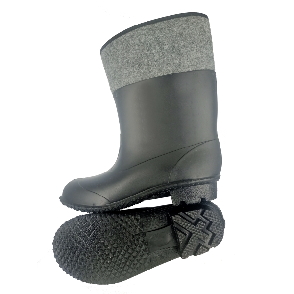 Cholewka: PVC w kolorze czarnym Wyściółka: włóknina filcowa 100% poliester Podnosek: brak Wkładka antyprzebiciowa: brak Zelówka: PVC