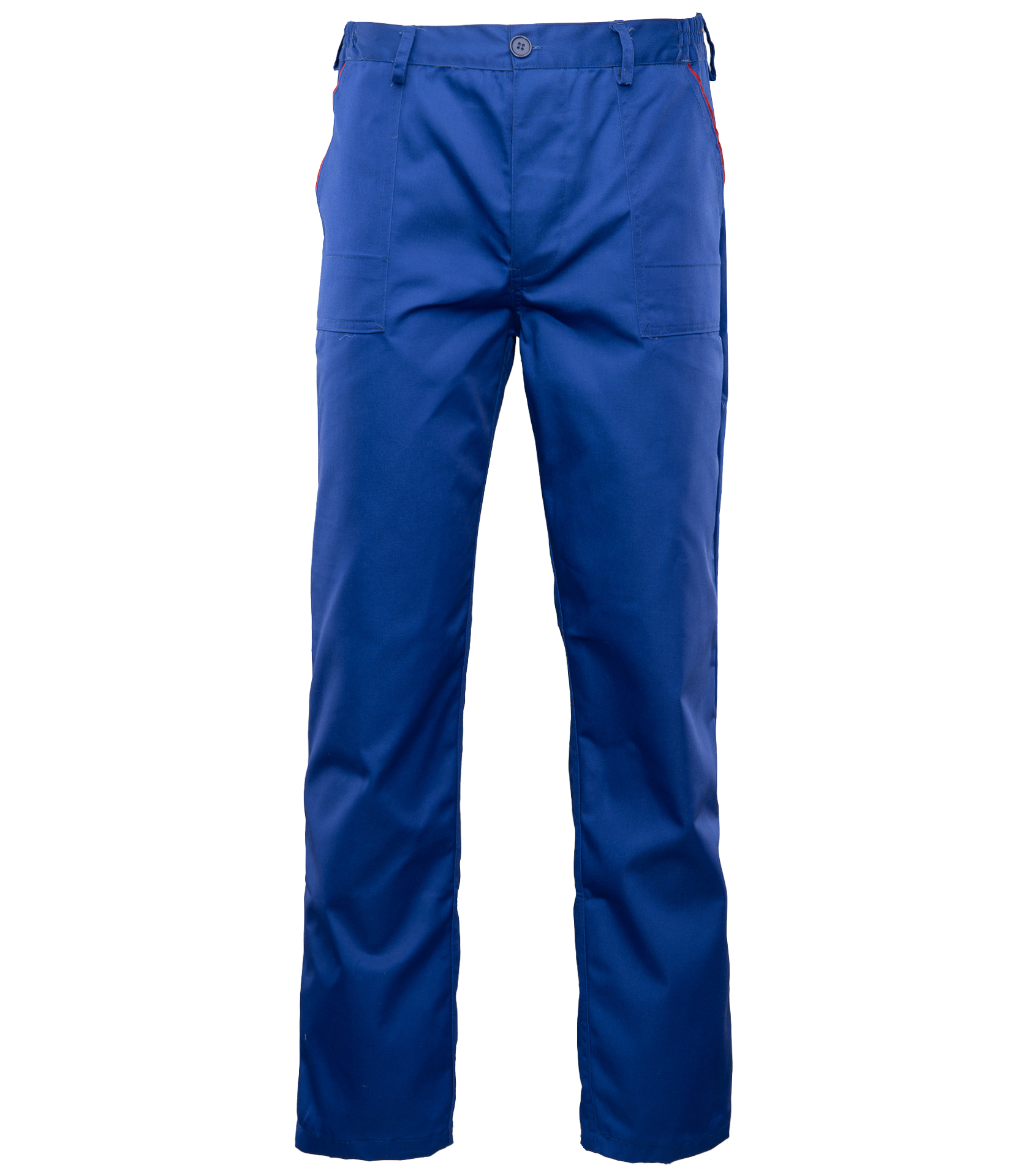 .Materiał:: wykonany z wysokiej jakości materiału, który nawet po wielokrotnym praniu zapewnia stabilność rozmiarów i kolorów,; .Budowa/szycie:: podwójne szwy, szyte mocną nicią,; lamówka kolorowa,; spodnie posiadają szlufki na pasek,; .Kieszenie:: kieszeń na miarkę „metrówkę”,; dwie kieszenie boczne,; kieszeń w tylnej części spodni,; .Regulacja obwodu:: możliwość regulacji w pasie dzięki gumce,;