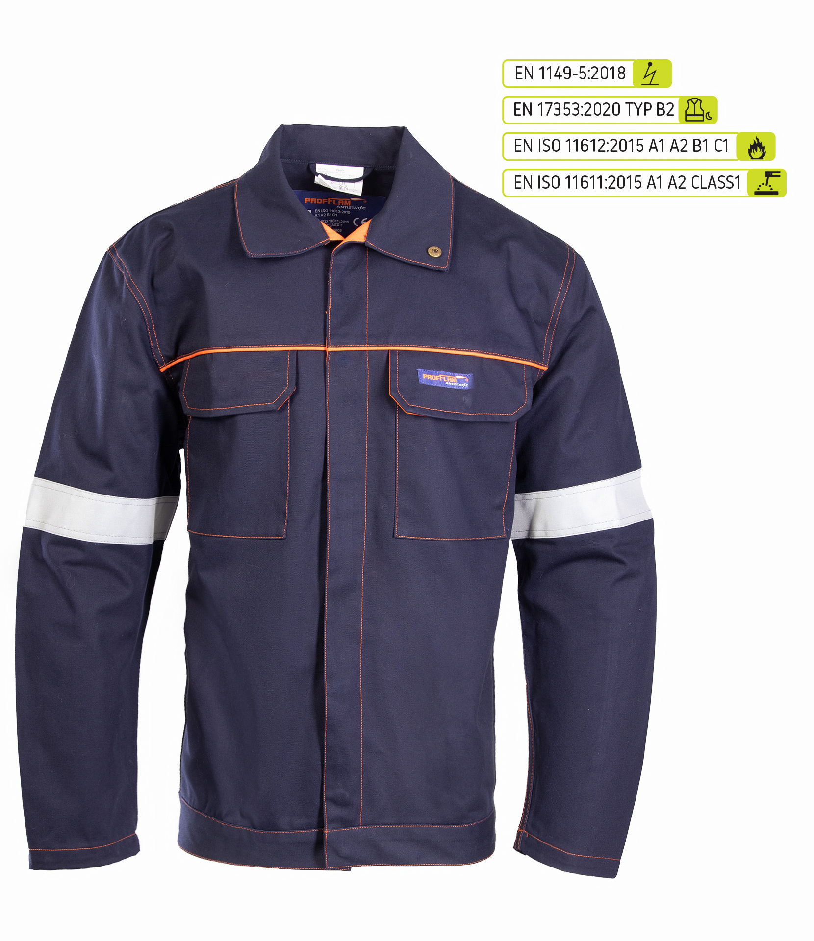 NORMA: EN 13688;EN ISO 13688:2013;EN ISO 11612:2015 A1 A2 B1 C1;EN 1149-5:2018; EN ISO 11611:2015 A1 A2 CLASS 1;EN 17353:2020 TYP B2;
