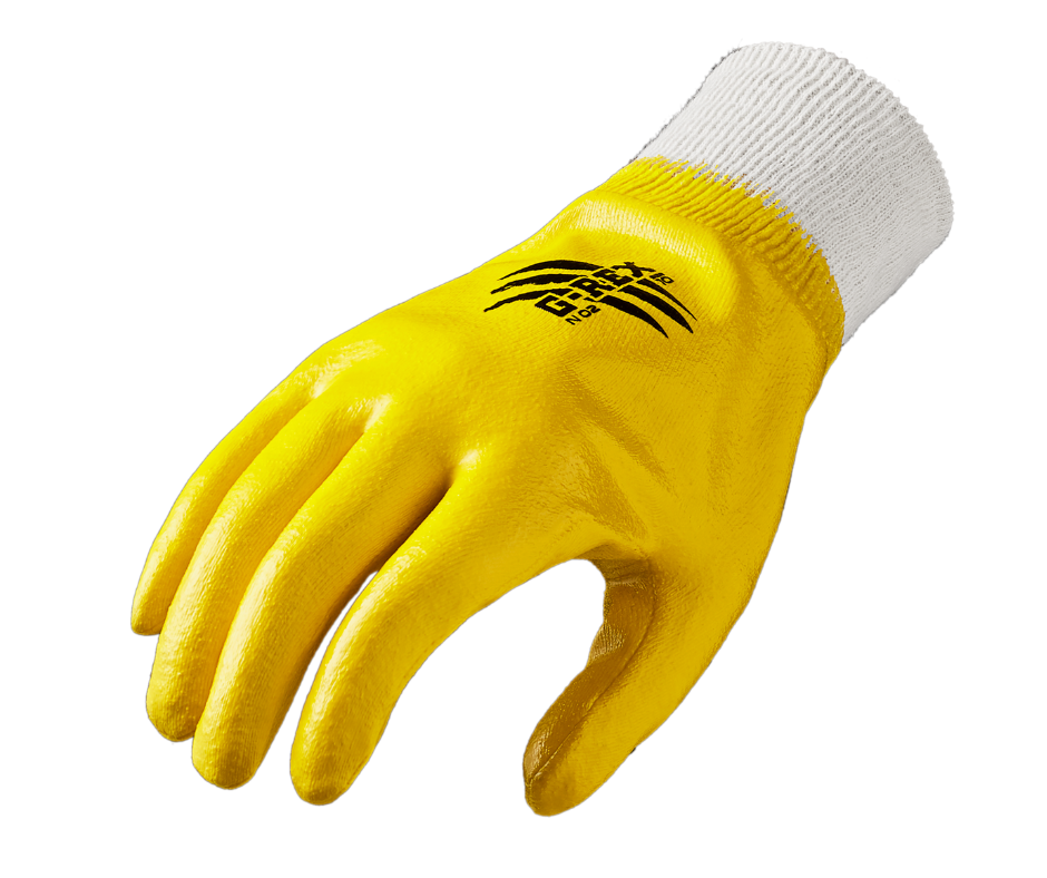 Rękawica ochronna kat. II, wykonana z wkładki bawełnianej (Sanitized/ Actifresh) powleczonej całościowo żółtym nitrylem. Zakończona ściągaczem. Normy: EN 388 (3111X), EN 420, EN 16350. Rozmiary: 7, 8, 9, 10, 11. Pakowanie: 12/144