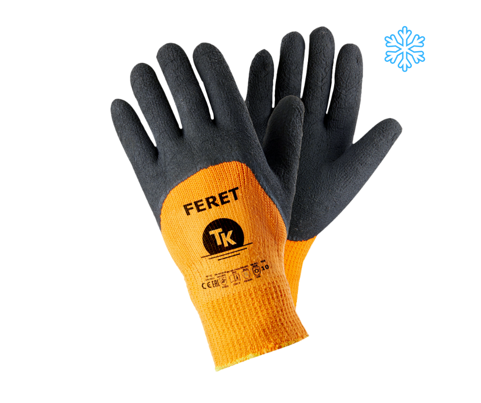 Rękawica ochronna kat. II, Ocieplona wkładka akrylowa powleczona szorstkowanym lateksem. Zakończona ściągaczem. Normy: EN 388 (4232X), EN 420, EN 511 (X3X), EN 407 (X2XXXX). Rozmiary: 8, 9, 10, 11, 12. Pakowanie: 12/144.