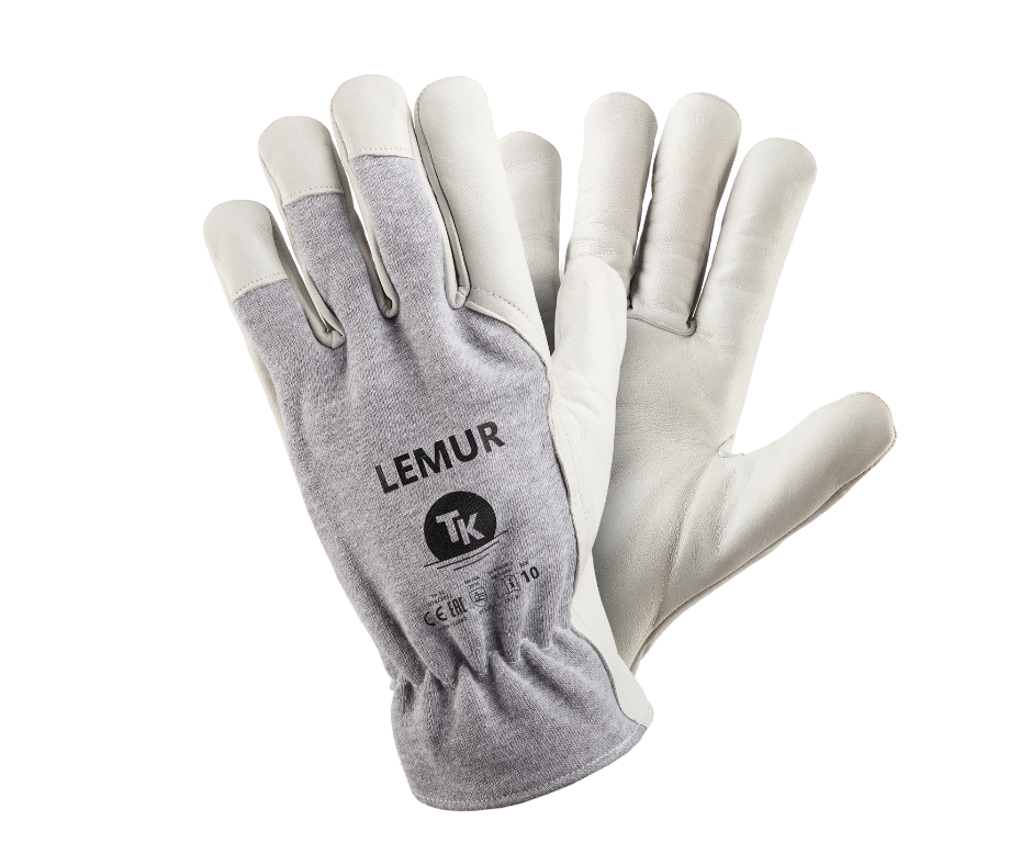Rękawica ochronna kat. II, wzmocniona skórą licową kozią. Drelich w kolorze szarym, zakończona gumką ściągającą. Normy: EN 388 (2132X), EN 420. Rozmiary: 7, 8, 9, 10, 11. Pakowanie: 12/120.