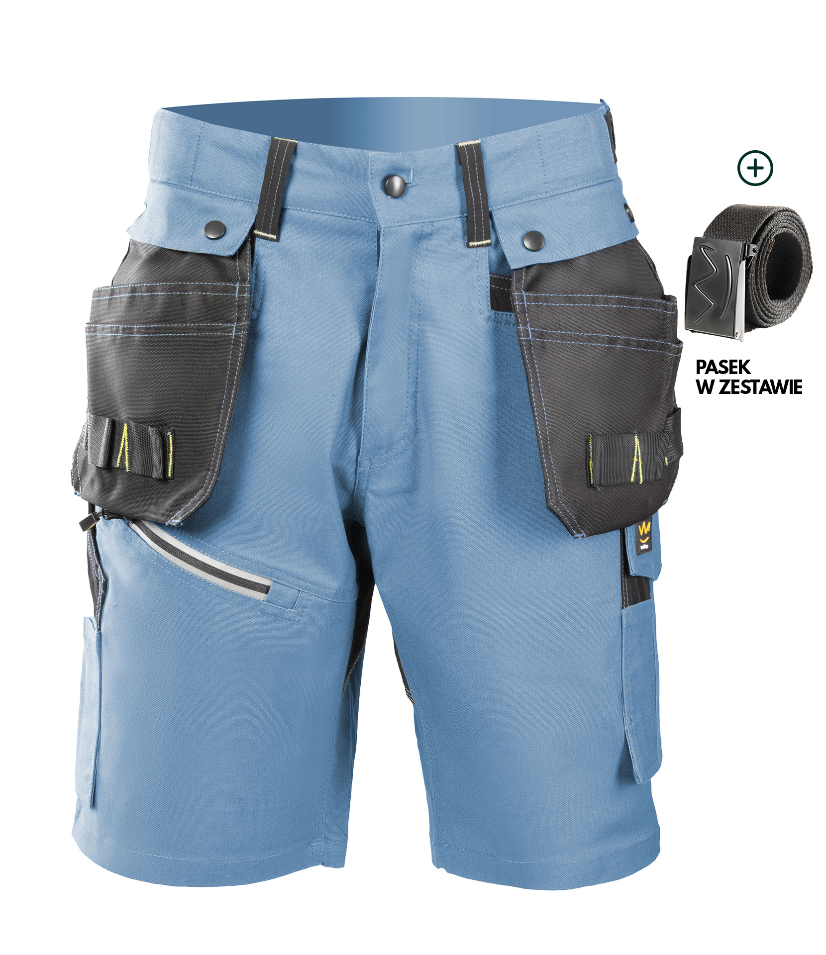.Materiał:: 57% cotton, 40% polyester, 3% elastan; .Budowa/szycie:: wykonane z wysokiej jakości materiału, który zapewnia po wielokrotnym praniu stabilność kolorów i rozmiarów,; podwójne i potrójne szwy, szyte mocną nicią,; wstawki kolorystyczne,; kontrastowe ryglówki,; spodnie posiadają wszysty klin w kroku zwiększający swobodę ruchów oraz komfort użytkownika,; logo SEVEN KINGS,; elastyczny ściągacz,; szlufka na młotek,; .Kieszenie:: kieszeń na miarkę „metrówkę”,; kieszeń na dokumenty,; kieszeń na długopisy,; dwie wzmocnione kieszenie boczne,; dwie odpinane kieszenie monterskie,; .Regulacja obwodu:: regulacja za pomocą gumki w pasie,; .Elementy odblaskowe:: lamówki odblaskowe,; Dodatki: pasek parciany do spodni w komplecie gratis,;