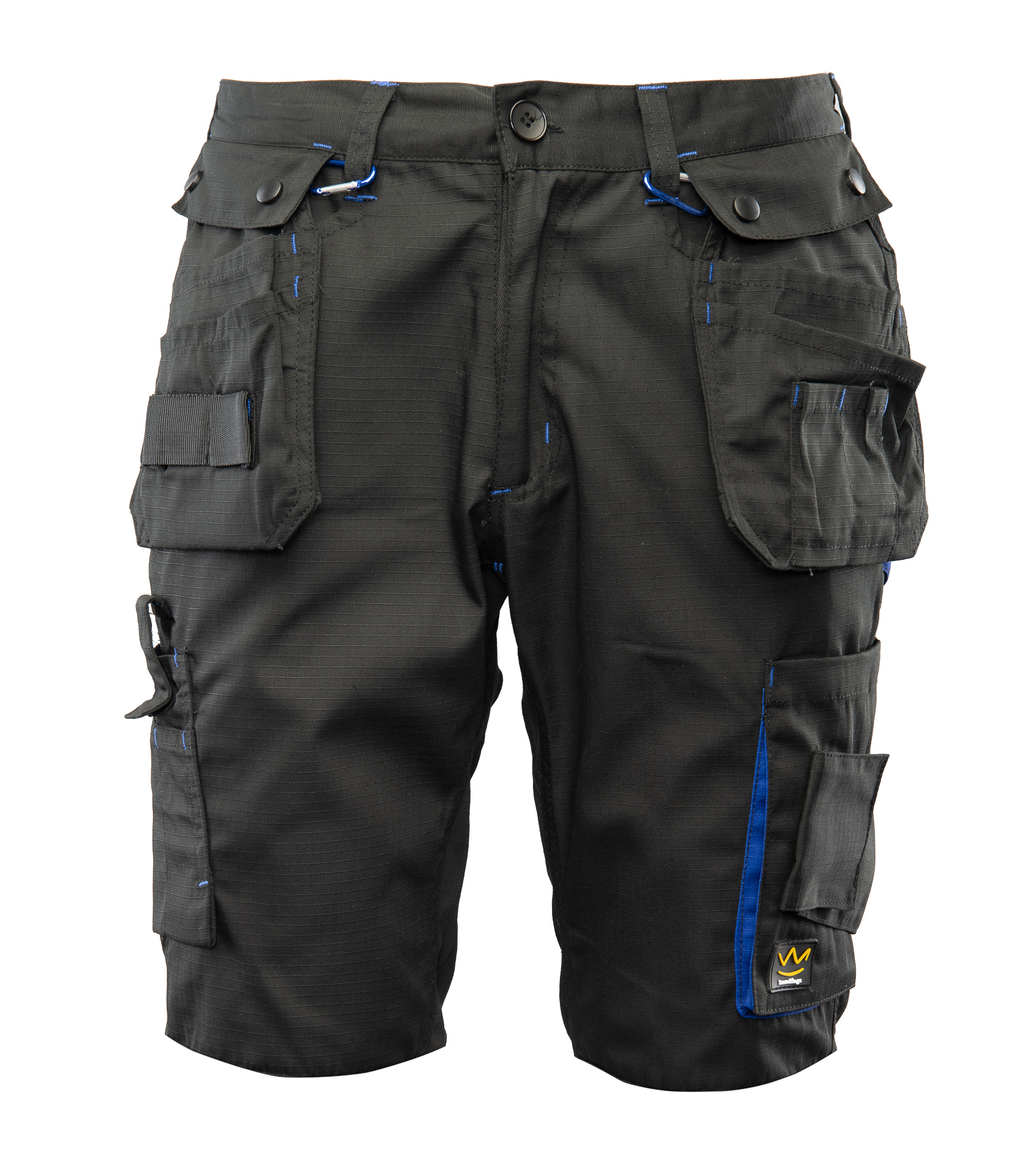 .Materiał:: wykonany z wysokiej jakości materiału, który nawet po wielokrotnym praniu zapewnia stabilność rozmiarów i kolorów,; 65% poliester/ 35% bawełna, gramatura 260 g/m2,; .Budowa/szycie:: lamówka kolorowa,; duża ilość ryglówek w miejscach szczególnie narażonych na rozprucie,; spodnie posiadają szlufki na pasek,; szlufka na młotek,; .Kieszenie:: kieszeń na miarkę „metrówkę”,; wzmocnione kieszenie zapinane na rzepy,; kieszeń na komórkę,; dwie kieszenie w tylnej części spodni,; dwie kieszenie monterskie, dopinane na zamek; .Regulacja obwodu:: możliwość regulacji w pasie dzięki gumce,;