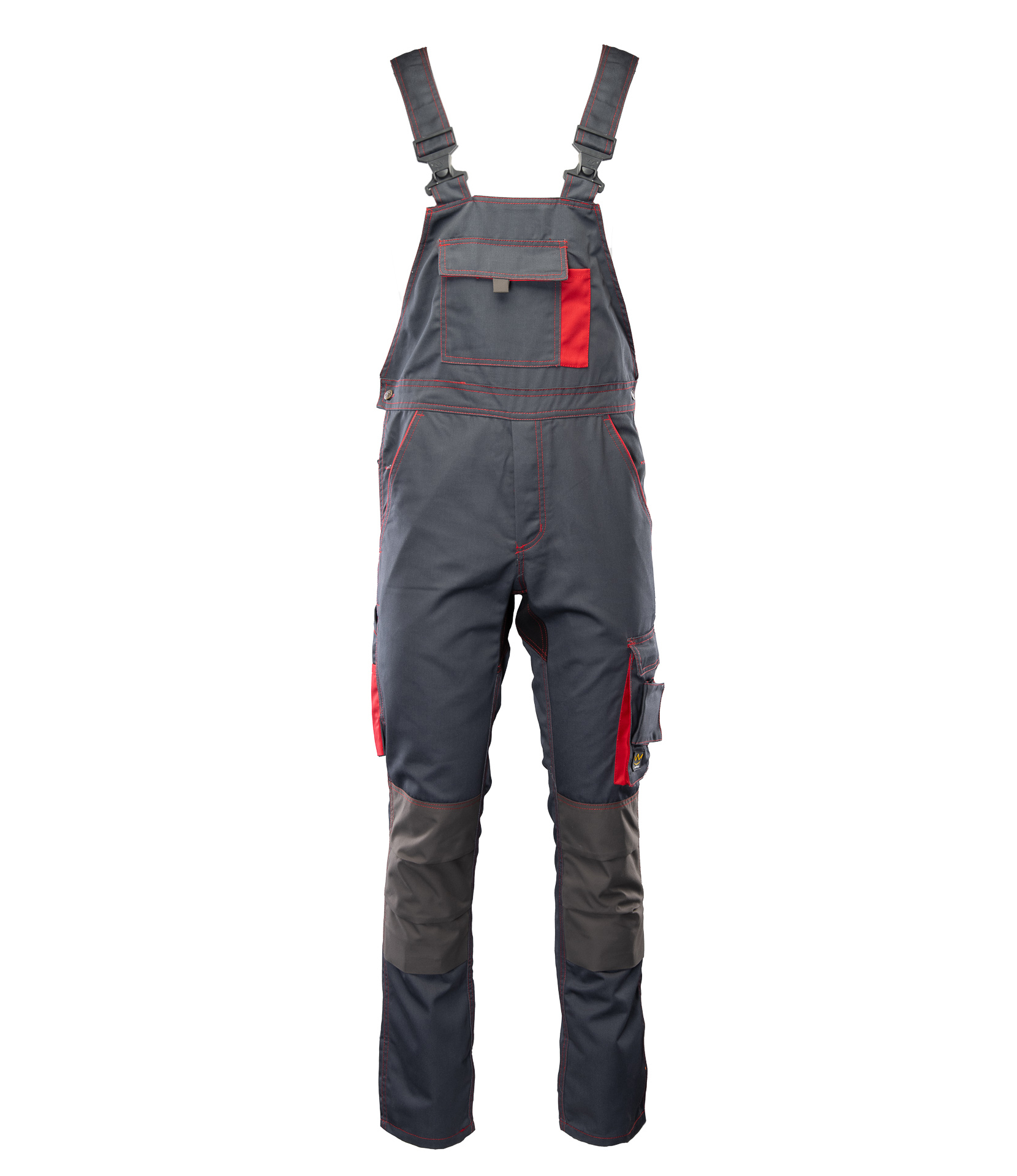 .Szelki:: długie, szerokie, regulowane szelki,; .Materiał:: wykonana z wysokiej jakości materiału, który nawet po wielokrotnym praniu zapewnia stabilność rozmiarów,; .Budowa/szycie:: podwójne i potrójne szwy, szyte mocną nicią,; duża ilość ryglówek w miejscach szczególnie narażonych na rozprucie,; .Kieszenie:: dwie kieszenie w tylnej części spodni,; wzmocnione kieszenie zapinane na rzepy,; kieszeń na komórkę,; dwie kieszonki na długopisy,; kieszeń na dokumenty,; kieszeń na miarkę „metrówkę”,; ergonomiczna kieszeń na nakolanniki wykonana z CORDURY,; .Regulacja obwodu:: możliwość regulacji w pasie za pomocą guzików,;
