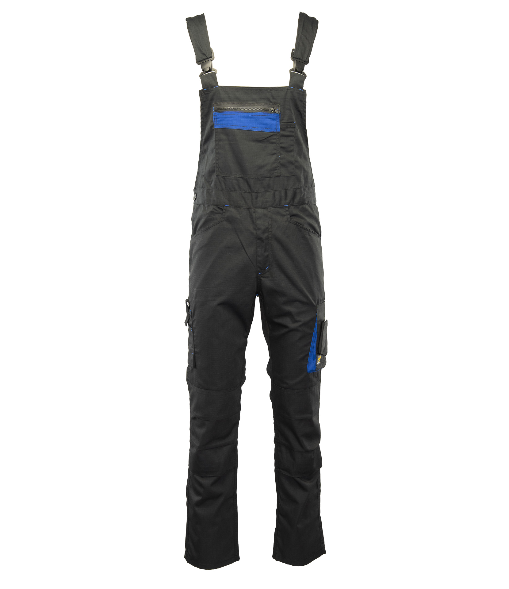 .Szelki:: długie, regulowane szelki,; .Materiał:: wykonany z wysokiej jakości materiału, który nawet po wielokrotnym praniu zapewnia stabilność rozmiarów i kolorów,; 65% poliester/ 35% bawełna, gramatura 260 g/m2,; .Budowa/szycie:: wstawki kolorystyczne,; duża ilość ryglówek w miejscach szczególnie narażonych na rozprucie,; szlufka na młotek,; spodnie posiadają szlufki na pasek,; podwójne szwy, szyte mocną nicią,; .Kieszenie:: dwie kieszenie w tylnej części spodni,; przestrzenne kieszenie,; dwie kieszenie boczne,; kieszeń na komórkę,; kieszeń na długopisy,; kieszeń na dokumenty,; kieszeń na miarkę „metrówkę”,; ergonomiczna kieszeń na nakolanniki,; .Regulacja obwodu:: możliwość regulacji w pasie za pomocą guzików oraz gumki wszytej w tylnej części spodni,;