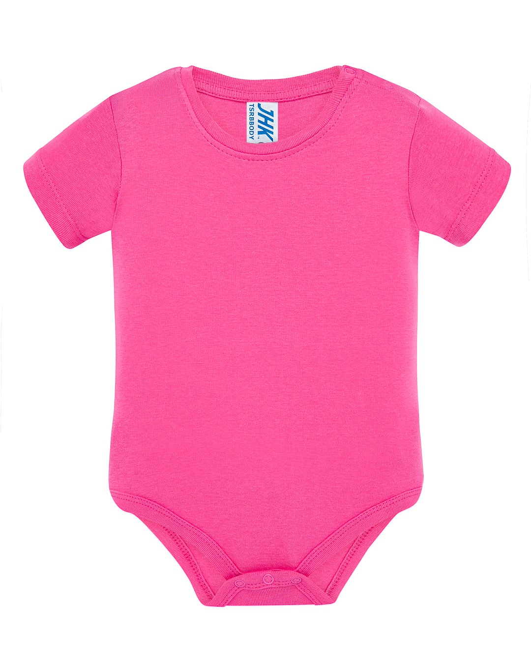 Body dziecięce z krótkim rękawem. Wykończenie pod szyją – lycrą. Zapinane na ramieniu i w kroku. Ściągacz 1×1. 100% bawełna.