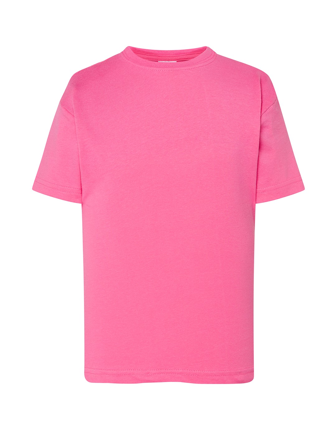 T-shirt dziecięcy. Dopasowany do sylwetki. Ściągacz wzmocniony lycrą. Taśma wzmacniająca pod ściągaczem. Podwójne szwy na ramionach i spodzie koszulki. 100% bawełna stabilizowana.